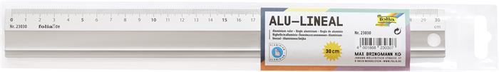 Vonalzó, aluminium, csúszásgátlós, 30 cm, FOLIA