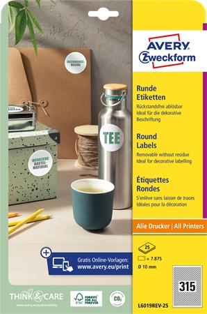 Etikett, univerzális, 10 mm, kör, eltávolítható, AVERY ZWECKFORM, 7875 etikett/csomag
